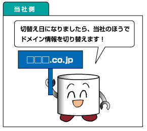 | 切替え日になりましたら、当社のほうでドメイン情報をNSPサーバのほうに切り替えます。 |